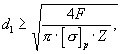F p - расчетная нагрузка на один болт,