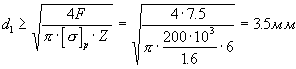 Расчетный внутренний диаметр резьбы