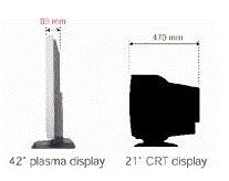 Panasonic Полный отход от обеих CRT и LCD панелей, наконец сделала возможным производство тонкого, плоского дисплея с большим экраном.Новый дисплей TC-42P1/F имеет 42"(106 см.) диагональный экран, толщину только 89 мм и весит всего 33 кг . При этом у него самые высокие уровни яркости (550cd/m2*) и контраста (550:1).