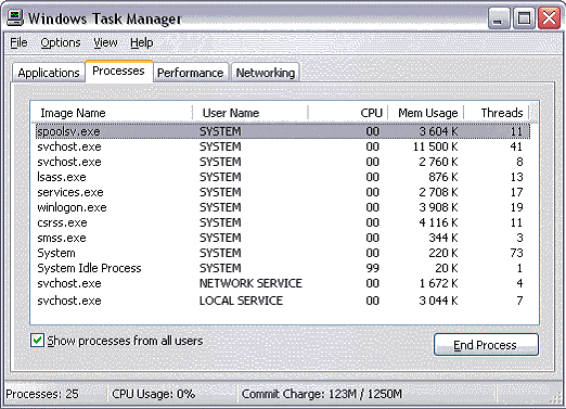 А если вообще приблизится к реальности, то пользователь имеет дело не с одним, не с двумя, и даже не с тремя процессами. На приведенном коллаже (это действительно коллаж, потому что со скриншота Task Manager были удалены все пользовательские процессы, т. е. приложения, запускаемые “для работы”) хорошо видно, что “голая” Windows XP, сама по себе, не запустив еще ни одного приложения, уже породила 12 процессов, причем многие из них к тому же еще и многопоточные, и общее количество потоков достигает двухсот восьми штук! На картинке приведены некоторые процессы.