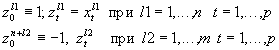 Итак, в p-мерном пространстве задана обучающая выборка x 1 , …, x n (первый класс) и y 1 , …, y m (второй класс) . Требуется найти такие p+1- мерный вектор w , что для всех i=1, …, n и j=1, …, m w 0 +(x i , w) >0 и w 0 +(y j , w) <0. Переформулируем задачу, сведя ее к отделению нуля от конечного множества векторов в p+1 — мерном пространстве. Для этого рассмотрим p+1 — мерные векторы z l (l=0,1, …., n+m) :