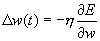 Когда функционал ошибки нейронной сети задан (раздел 6.3) , то главная задача обучения нейронных сетей сводится к его минимизации. Градиентное обучение — это итерационная процедура подбора весов, в которой каждый следующий шаг направлен в сторону антиградиента функции ошибки. Математически это можно выразить следующим образом: