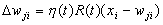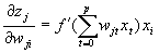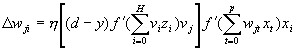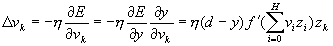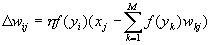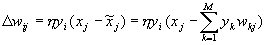 для однослойной сети. Учитывая то, что в такой структуре веса с одинаковыми индексами в обоих слоях одинаковы, дельта-правило обучения верхнего (а тем самым и нижнего) слоя можно записать в виде: