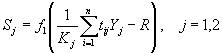 (i =1,..., M; j=1,2) — коэффициенты от i-го нейрона слоя Кохонена к j-му нейрону выходного слоя рассчитываются следующим образом: