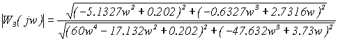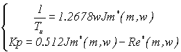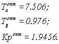 Решением этого уравнения является то, что мы находим следующие параметры w = 0.417, следовательно, и w c = 0.417. Для определения оптимальных параметров регулятора необходимо решить уравнение (1.6) . Приравняв вещественные и мнимые части в уравнении (1.6) , можно получить расчетные формулы для определения параметров регуляторов [4, ст 250]: