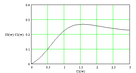 Рис. 1.3. График зависимости С 1 С 0 = f(C 1 ) Нужно взять точку, лежащую справа от глобального максимума. Максимальное значение С 1 С 0 =0.268, при С 1 = 1.576. Берем точку С 1 С 0 = 0.2592 при С 1 =1.9456. По этим значениям определим оптимальные параметры регулятора: