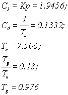 Таблица 1.2 Данные для расчета оптимальных параметров настроек ПИ-регулятора