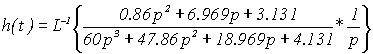 Они равны: p 1 = 0; p 2 = -0.405 — j0.116; p 3 = -0.405 + j0.116; p 4 = -0.039 — j0.192; p 5 = -0.039 + j0.192. Переходная функция для замкнутой системы с ПИД-регулятором будет иметь следующий вид: h(t) = 1 — 0.2927e -0.404t *cos(0.1157t) - 0.032e -0.404t *sin(0.1157t) - 0.6934e -0.038t *cos(0.1918t) - 0.2055e -0.0388t *sin(0.1918t) . Построим переходный процесс функции, изобразим график этого процесса на рисунке 2.3.