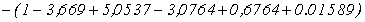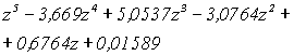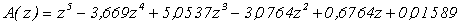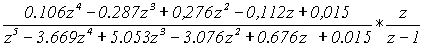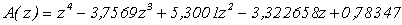 0,7347z-3,1644z 2 +5,102835z 3 -3,6802818z 4 +0,999747z 5 Домножим полученный результат на z -1 , тогда: A 1 (z) = 0,7347-3,1644z+5,102835z 2 -3,6802818z 3 +0,999747z 4 , A 10 (z) = 0.99974 -3,680218z+5,1028z 2 -3,1644z 3 +0,7347z 4 . Разделим A 1 (z) на A 10 (z) .