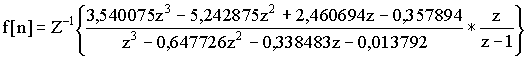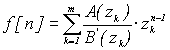 Полюса функции: z 1 = 1; z 2 = 0,8422; z 3 = 0,954 — j0,313; z 4 = 0,954 — j0,313. Производная знаменателя функции: B ’ (z) = -11.25z 2 +10.574z-3.317+4z 3 . Подставим значение полюсов функции и значение производной в формулу (4.13) , получим выражение для: где a= z 1 ; b = z 2 ; c = z 3 ; d = z 4 ;