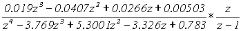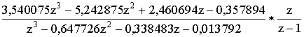 0,006046z-0,01207z 2 +0,00605z 3 Домножим полученный результат на z -1 , тогда: A 2 (z) = 0,006046z-0,01207z 2 +0,00605z 3 , A 20 (z) = 0,00605-0,005474z 2 -0,006046z 3 . Разделим A 2 (z) на A 20 (z) .