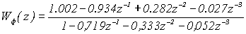-0,0288981z-0,02926z 2 +0,91927z 3 Домножим полученный результат на z -1 , тогда: A 3 (z) = -0,0288981-0,02926z+0,91927z 2 , A 30 (z) = 0,91927-0,02926z-0,02889881z 2 . Разделим A 3 (z) на A 30 (z) .