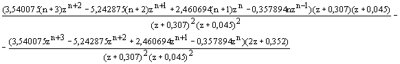 Находим 2 полюса 1-го порядка и 1 полюс 2-го порядка. Полюса 1-го порядка: z=-0,307 и z=-0,045. Полюс 2-го z=1. Для вычисления переходной функции необходимо вычислить производную следующей функции