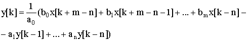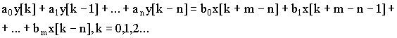 Этой передаточной функции соответствует уравнение в конечных разностях: