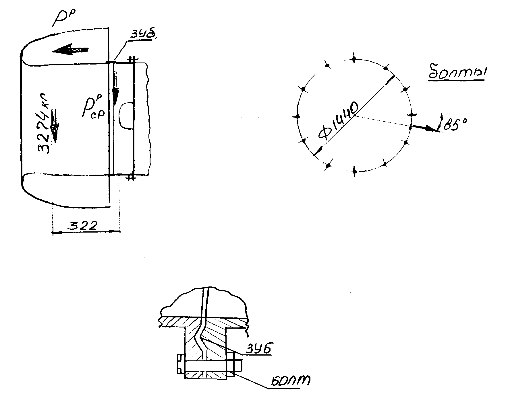 Максимальная растягивающая нагрузка на болт Р болт = 245,2 кг.