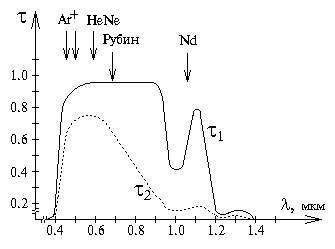 Основной элемент зрительного аппарата человека — сетчатка глаза — может быть поражена лишь излучением видимого (от 0.4 мкм) и ближнего ИК-диапазонов (до 1.4 мкм) , что объясняется спектральными характеристиками человеческого глаза (рис. 1) . При этом хрусталик и глазное яблоко, действуя как дополнительная фокусирующая оптика, существенно повышают концентрацию энергии на сетчатке, что, в свою очередь, на несколько порядков понижает максимально допустимый уровень (МДУ) облученности зрачка. Световой диаметр зрачка при расчете МДУ облучения принимают обычно равным 7 мм. Это не всегда соответствует действительности. Например, при большой светлоте (физиологическая оценка яркости) фона — из-за световой адаптации, в пожилом возрасте — из-за уменьшения чувствительности световых рецепторов. 1.1.1. МДУ прямого облучения сетчатки Кроме длины волны l, необходимо учитывать также длительность воздействия светового излучения. При очень коротких импульсах (когда не успевают сработать механизмы теплопроводности в области сетчатки) нормируют плотность энергии для видимого излучения (0.4<l <0.7 мкм) при D t< 2Ч 10 -5 c МДУ облучения роговицы глаза составляет 5Ч 10 -3 Дж/м 2 ; для ИК-излучения (1.05<l <1.4 мкм) при 2Ч 10 -5 <D t<5Ч 10 -5 с — на порядок больше, то есть 5Ч 10 -2 Дж/м 2 . Если длительность импульса превышает 20 мкс для видимого и 20ё 50 мкс для ближнего (до 1.4 мкм) излучения, то нормируют в первом приближении плотность мощности: для видимого излучения МДУ составляет 18D t 0.75 Вт/м 2 ; для ИК-излучения — почти порядок больше, то есть 90D t 0.75 Вт/м 2 . Во всех рассматриваемых далее случаях переходная область спектра — от темно-красного (l >700 нм) до полностью невидимого ближнего ИК-излучения (l <1050 нм) — характеризуется монотонным повышением МДУ от минимального значения (для темно-красного излучения) до максимального (для полностью невидимого ИК-излучения) по закону С 4 =10 (l -700) /500 . Приведенные данные по МДУ охватывают область наиболее критических значений параметров облучения зрачка глаза, когда в интервале от 10 -9 до 10 с причиной повреждения сетчатки является тепловое действие сфокусированного света при прямом наблюдении лазерного пучка, тогда как сверхкороткие лазерные импульсы вызывают в основном термоакустическое воздействие — протоплазма клеток из-за быстрого разогрева закипает и разрывает оболочку. В этом случае нормируют плотность мощности: для видимого излучения МДУ составляет 5Ч 10 6 Вт/м 2 , для ИК-излучения — 5Ч 10 7 Вт/м 2 . Длительное (D t>10 с) прямое воздействие лазерного излучения на сетчатку приводит в основном к фотохимическим процессам ее разрушения. Чтобы избежать этого (как и в случае сверхкоротких импульсов) , нормируют энергетическую освещенность (экспозицию) . Для зеленого (l =550 нм) и более коротковолнового (l >400 нм) видимого света МДУ составляет 100 Дж/м 2 . Что касается "теплых" цветов (550<l <700 нм) , то фотохимические процессы начинают играть заметную роль только при больших временных воздействиях лазерного излучения (T 2 =10 0.02(l -500) +1 c) , и в этом случае МДУ нужно уменьшить в С 3 раз (C 3 =10 0.015(l -550) ) . Сверхдлительное (D t>10 3ё 10 4 c) прямое воздействие лазерного излучения характеризуется малым значением МДУ, а именно 0.01 Вт/м 2 для сине-зеленого (0.4<l <0.55 мкм) излучения. Более длинноволновое видимое излучение (550<l <700 нм) допускает МДУ=10 0.015(l -500) +2 Вт/м 2 . В случае ИК излучения переход от экспозици