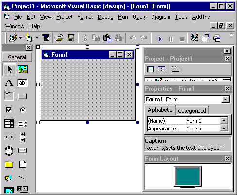 Рис. 1.2. Интегрированная среда проектирования (разработки) Visual Basic 6 В состав среды проектирования включен набор следующих основных элементов: