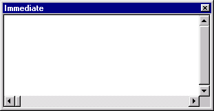 назад | содержание | вперед Окно Immediate Окно Immediate (Непосредственное выполнение) предназначено для ручного ввода и выполнения команд Visual Basic 6 (рис. 1.15). Это окно появляется автоматически при прерывании работы программы в точках останова программы. Для выполнения команды или оператора Visual Basic необходимо набрать строку команды и нажать клавишу <Enter>. В сочетании с окнами Locals (Локальные) и Watches (Наблюдение), окно Immediate является удобным средством для отладки и проверки работы программы в пошаговом режиме. Проверяемые части или блоки программы можно копировать из программных модулей приложения в окно Immediate, и после проверки и внесения необходимых изменений по результатам контроля возвращать в модуль приложения.