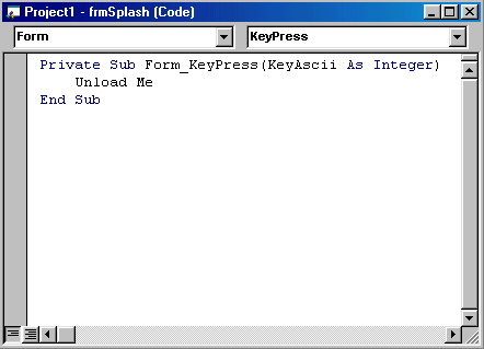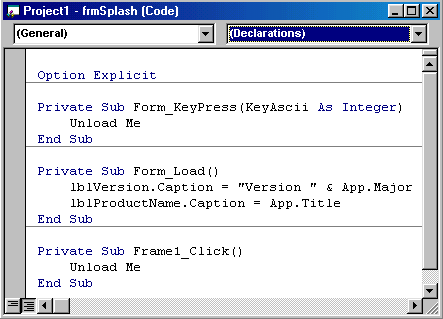 Рис. 10.1. Редактор кода в режиме полного просмогра процедур Как можно понять из списка элементов управления, редактор кода работает в двух режимах: в режиме просмотра всего текста приложения (полный просмотр процедур) (рис. 10.1) и в режиме просмотра процедур по отдельности (просмотр отдельных процедур) (рис. 10.2).
