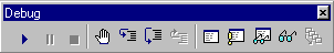 Рис. 10.4. Панель инструментов Debug, используемая для отладки приложения На панели инструментов Debug находятся кнопки, обеспечивающие работу по отладке приложения. Назначение этих кнопок описано в табл. 10.3. Таблица 10.3. Кнопки панели инструментов Debug
