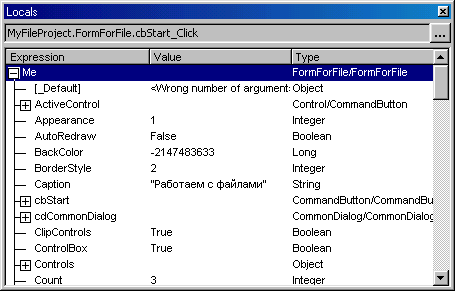 Рис. 10.8. Окно Locals для контроля за переменными