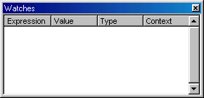 Рис. 10.9. Окно Watches для контроля за значениями выражений Список проверяемых выражений пополняется в диалоговом окне Add Watch (рис. 10.10), открываемом командой Add Watch (Добавить наблюдение) контекстного меню редактора кода или одноименной кнопкой на панели инструментов Debug (Отладка). Для добавления выражения в список контролируемых необходимо ввести его в текстовое поле Expression (Выражение) этого окна.