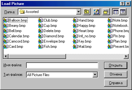 назад | содержание | вперед Свойство Picture Чтобы разместить в форме графическое изображение, не обязательно выбирать графические объекты. Можно просто воспользоваться свойством picture формы. Для вставки графического изображения в форму необходимо нажать кнопку с тремя точками в свойстве picture, а затем в открывшемся диалоговом окне Load Picture (Загрузить изображение) (рис. 11.4) выбрать файл требуемого изображения. Данное свойство формы используют для размещения фонового изображения. При этом необходимо учесть, что размер формы должен соответствовать размеру исходного изображения. Если изображение меньше формы, то оно размещается в левом верхнем углу формы и в дальнейшем не перемещается. Поэтому такой способ хотя и прост, но очень неудобен.