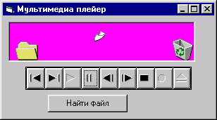 назад | содержание | вперед Проигрыватель видеофайлов При помощи приложения, разработанного в предыдущем разделе, можно воспроизводить и видеофайлы в формате AVI. Для этого необходима небольшая доработка: потребуется назначить другой тип устройства для элемента управления MMControlCDPlayer (сравните тексты кода, указанного ниже, и предыдущего). В результате мы превратим проигрыватель звуковых файлов в проигрыватель для файлов в формате AVI (рис. 12.5).