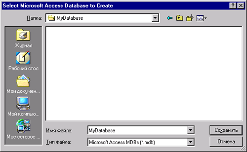 Рис. 16.1. Диалоговое окно Select Microsoft Access Database to Create