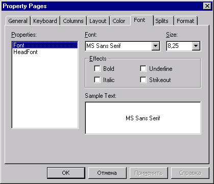 Рис. 17.33. Вкладка Font диалогового окна Property Pages Внешний вид текста, который получается в результате всех изменении, можно просмотреть в поле ввода Sample Text.