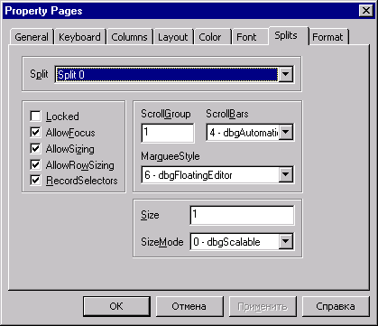Рис. 17.34. Вкладка Splits диалогового окна Property Pages В левой части вкладки расположены флажки следующего назначения: