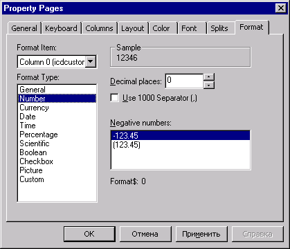 назад | содержание | вперед Вкладка Format Вкладка Format (Формат) (рис. 17.35) предназначена для определения формата отображения данных в столбцах. В раскрывающемся списке Format