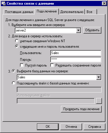 Рис. 17.5. Вкладка Connection диалогового окна Data Link Properties