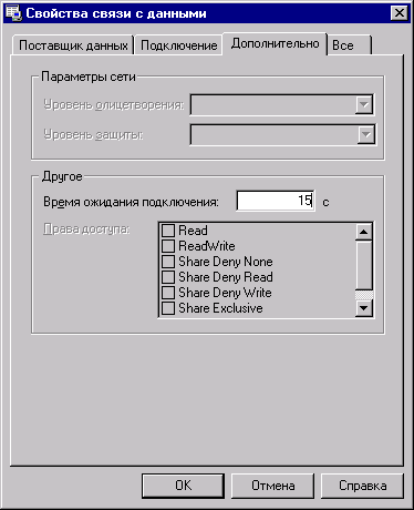 Рис. 17.6. Вкладка Advanced диалогового окна Data Link Properties