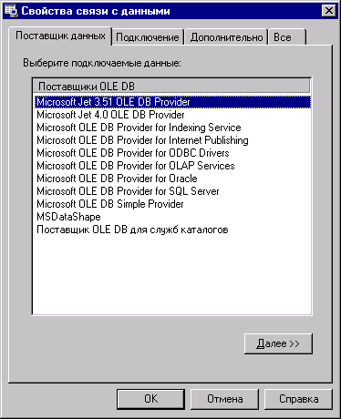 Рис. 18.5. Окно Data Link Properties для выбора поставщика услуг