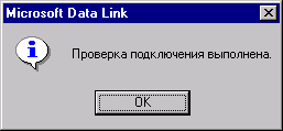 Рис. 18.7. Диалоговое окно с сообщением о проверке соединения 7. Для подтверждения выполненных действий закройте окно Data Link Properties, нажав кнопку ОК. 8. Выполнив все действия по созданию среды окружения данных, необходимо проверить наличие таблиц и данных в выбранной для проектирования отчета базе данных. Для этого откройте окно Data View (Просмотр данных) доступа к базе данных (рис. 18.8), выбрав команду Data View Window (Окно просмотра данных) меню View (Вид) или нажав кнопку Data View Window на панели инструментов.
