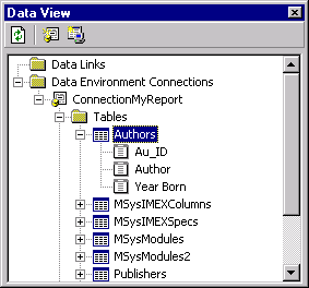 назад | содержание | вперед Окружение данных отчета Любой отчет создается для вывода конкретной информации. При проектировании отчета необходимо создать и сохранить окружение данных. Для этого выполните следующие действия: 1. В меню Project (Проект) выберите команду More ActiveX Designers (Другие конструкторы ActiveX), а затем значение Data Environment (Окружение данных). Открывается окно DataEnvironmentI, содержащее соединение Connectioni. 2. С помощью команды Properties Window (Окно свойств) меню View (Вид) откройте окно свойств и измените DataEnvironmentI на DataEnvironmentMyReport, а также наименование соединения на ConnectionMyReport (рис. 18.4).