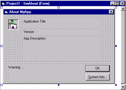 назад | содержание | вперед Шаблон About Dialog Обычно в приложение добавляют диалоговое окно с краткой информацией о назначении приложения и его функциях. Для создания этого диалогового окна в Visual Basic можно использовать шаблон формы About Dialog (рис. 2.28).