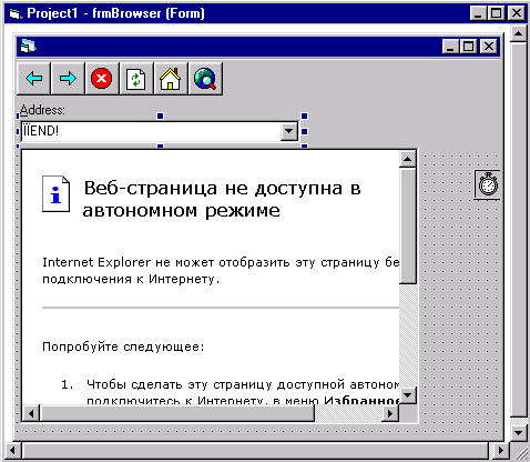назад | содержание | вперед Шаблон Web Browser Для быстрого создания диалоговых окон Web-браузеров можно использовать шаблон формы, показанный на рис. 2.29. В шаблоне заданы типовые кнопки для перемещения по страницам и раскрывающийся список для ввода или выбора адресов в сети Internet.