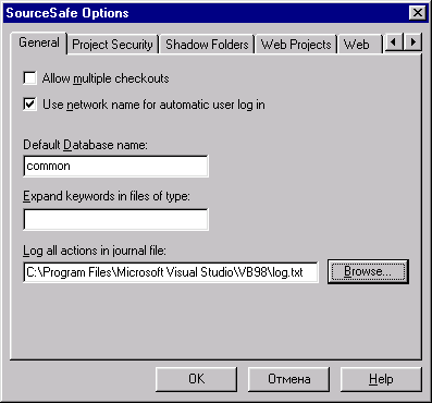 Рис. 20.2. Вкладка General диалогового окна SourceSafe Options На вкладке General (Общие) (рис. 20.2) можно установить общие параметры работы.