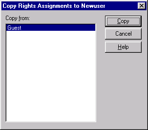 Рис. 20.11. Окно Copy Rights Assignment to для копирования прав пользователей После выбора из списка в этом окне пользователя с. необходимы ми правами, при помощи кнопки Сору (Копировать) выполняется копирование прав доступа для выбранного пользователя, имя которого находится в заголовке окна.