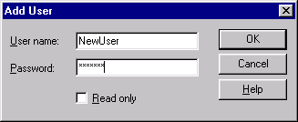 Добавление пользователей выполняется командой Add User (Добавить пользователя) меню Users (Пользователи). При этом вызывается одноименное окно Add User (рис. 20.7), в котором можно ввести имя пользователя и его пароль.