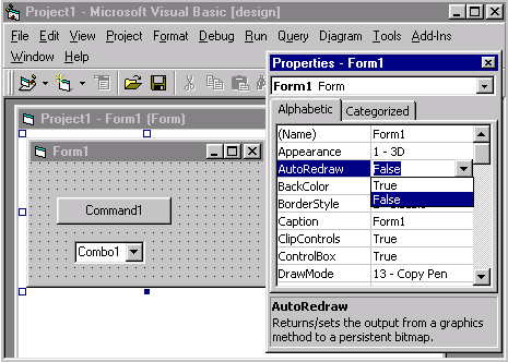 В результате откроется окно Properties со свойствами выделенного объекта (рис. 3.9). Раскрывающийся список в верхней части окна Properties содержит перечень всех объектов формы. Его можно использовать для выбора объекта вместо выделения нужного объекта в форме. Ниже списка объектов формы расположены две вкладки. Вкладка Alphabetic (По алфавиту) содержит расположенные по алфавиту названия свойств объектов, а вкладка Categorized (По категориям) — свойства объектов, сгруппированные по категориям. В нижней части диалогового окна Properties содержится описание выбранного в списке свойства.
