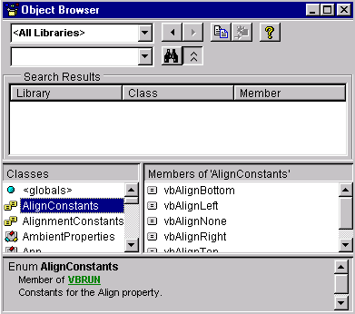 Рис. 5.3. Поиск встроенных констант с помощью браузера объектов
