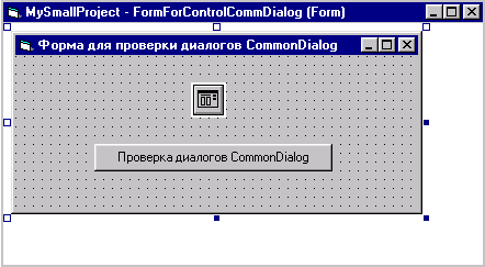 Рис. 7.21. Проект MySmallProject для проверки диалоговых окон, создаваемых с помощью элемента управления CommonDialog