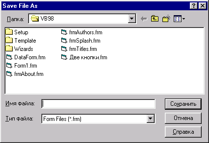 Рис. 7.23. Диалоговое окно сохранения файла, созданное с помощью объекта CommonDialog Как видно из рисунка, это диалоговое окно аналогично окну, предназначенному для открытия файла. Флаги этого диалогового окна перечислены в табл. 7.12.