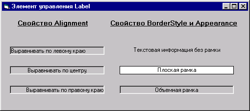 Рис. 8.2. Оформление надписей Текст, задаваемый объектом Label, может иметь достаточно большой размер и занимать несколько строк. Максимальное количество его символов — 65528. Задать размеры надписи можно с помощью следующих средств:
