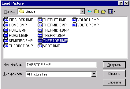 Рис. 8.9. Диалоговое окно Load Picture, предназначенное для выбора изображения, помещаемого на кнопке Помимо вышеперечисленных свойств, для управления видом графической кнопки используются также свойства Disabledpicture и DownPicture. Свойство DisabledPicture позволяет задать графическое изображение неактивной кнопки, а DownPicture — графическое изображение, отображаемое на кнопке при ее нажатии.