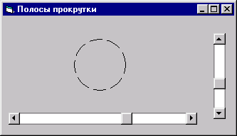 Рассмотрим пример использования в форме полос прокрутки. Разместим в форме элемент управления shape. Затем добавим в форму элементы управления vscroliBar и HScrollBar. Значение горизонтальной полосы прокрутки будем использовать для изменения формы объекта, задаваемой свойством shape, а значение вертикальной — для задания стиля оформления контура (рис. 8.19).