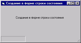 назад | содержание | вперед Элемент управления StatusBar Со строкой состояния вы постоянно сталкиваетесь при работе в различных приложениях Windows. Например, просматривая текст в Microsoft Word, вы по строке состояния ориентируетесь, на какой странице документа находитесь. При работе с таблицами базы данных вы обращаетесь к строке состояния, чтобы узнать номер обрабатываемой записи. Строка состояния используется в приложении для информирования пользователя о текущем состоянии приложения. Желательно, чтобы разрабатываемое вами приложение также имело строку состояния. До появления элемента управления StatusBar для создания строки состояния применялись искусственно выделяемые области с использованием других элементов управления, например PictureBox, в которых размещались соответствующие надписи. Для создания в форме строки состояния с помощью стандартного элемента управления StatusBar выполните следующие действия: 1. Нажмите кнопку StatusBar на панели элементов управления. 2. Установите курсор мыши в любое место формы и нарисуйте рамку. Ее размеры и расположение не имеют значения, так как Visual Basic по умолчанию поместит ее внизу формы и растянет на всю ширину (рис. 8.35).
